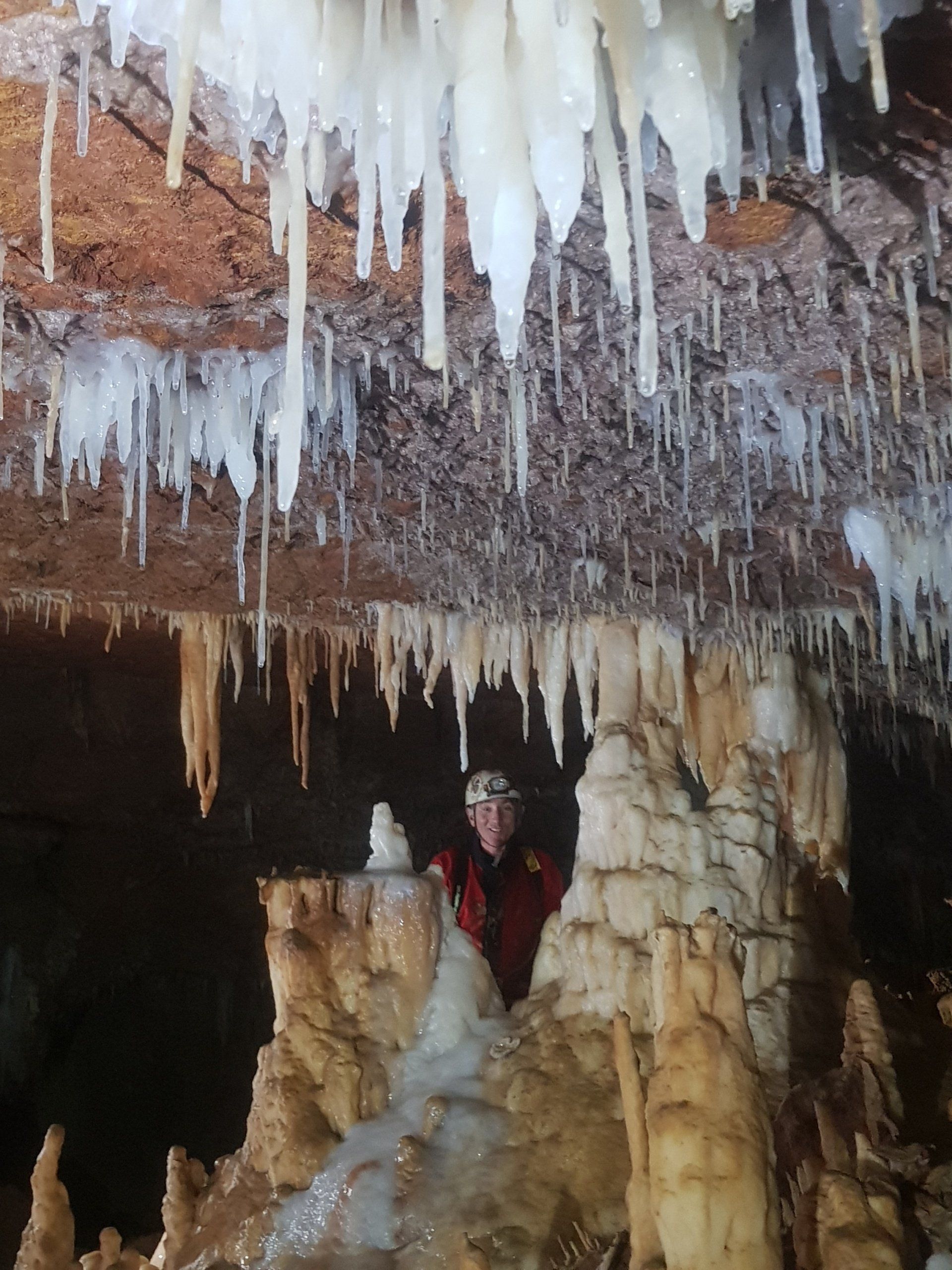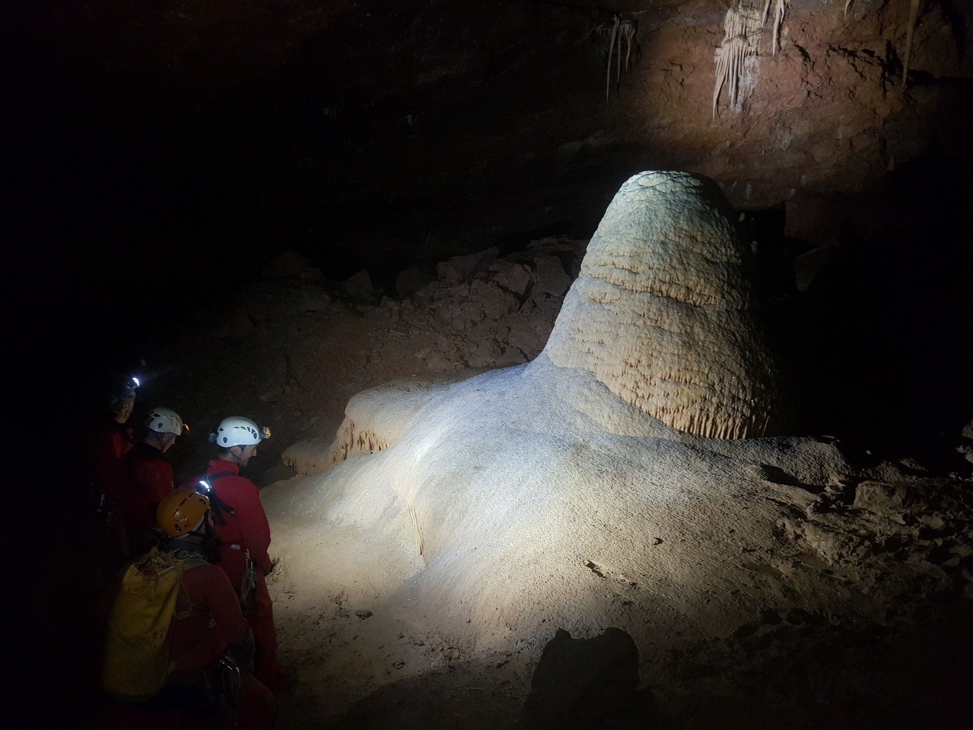 En bas, des stalactites, des traces géologiques bien expliquées, et après un mini trail en sous-sol, repas près d’une concrétion en forme de sombrero. La descente continue, avec pas mal de boue, pour arriver à une piscine souterraine où on se baignerait bien ! Le retour est assez sportif, la montée sur la corde de sortie à la force des jambes sollicite bien le cardio vasculaire, et on ressort un poil désorienté dans la lumière et la chaleur.